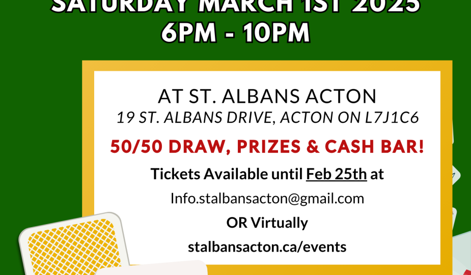 Once again, we are welcoming back Euchre Night at St. Alban’s Acton!